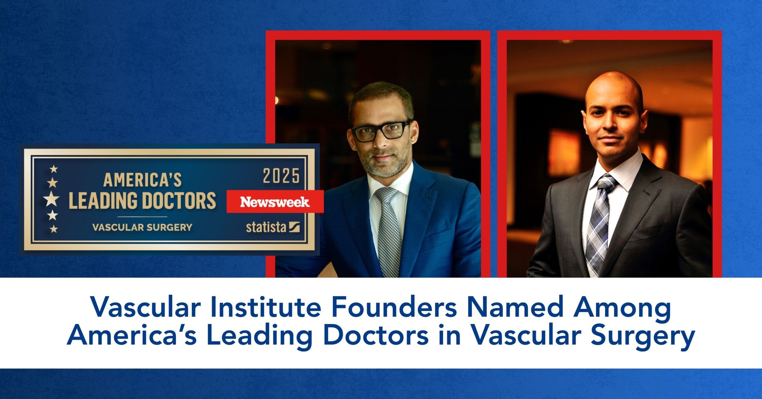 October 6, 2025 – Newsweek and Statista have named Dr. Anton Dias Perera and Dr. Prateek Gupta, founders of The Vascular Institute, to the 2025 list of America’s Leading Doctors in the specialty of Vascular Surgery. This national recognition highlights physicians who demonstrate exceptional clinical outcomes, peer respect, and contributions to their field.